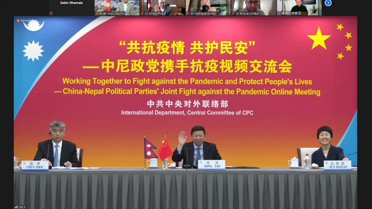 काठमाडौं । नेपाल र चीनका राजनीतिक पार्टीबीच भर्चुअल बैठक सम्पन्न भएको छ । बैठकमा उपप्रधानमन्त्री ईश्वर पोखरेलले कोभिड १९ संक्रमणको सम्बन्धमा चिन सरकारले दिएको सहयोगको निम्ति आभार व्यक्त व्यक्त गरेका छन् ।