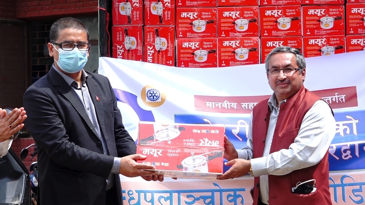 ललितपुर जिल्लामा अवस्थित रहेको १७ वटा रोटरी क्लवहरुको सञ्जालले मंगलबार राष्ट्रिय विपद् जोखिम न्यूनीकरण तथा व्यवस्थापन प्राधिकरणमार्फत् २७५ थान प्रेसरकुकर सहयोग गरेको हो ।