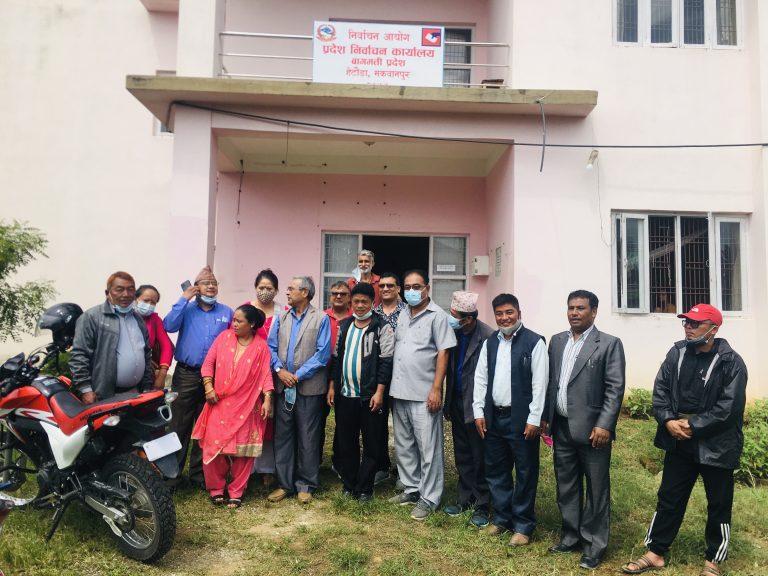 उहाँहरुको सनाखतका नेकपा एकीकृत समाजवादीका केन्द्रीय सदस्य एवम् बागमती प्रदेश इन्चार्ज केदार न्यौपाने, केन्द्रीय सदस्य मुनु सिग्देल, जिल्ला अध्यक्ष श्रीधर पोखरेल, सभासद राजाराम स्याङ्तान, उपाध्यक्ष मीना लामा, सचिव विष्णु दाहालसहितको टोली प्रदेश निर्वाचन कार्यालय हेटौँडा पुगेका थिए ।