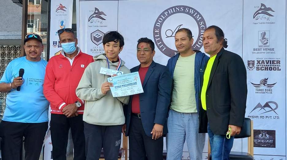 काठमाडौं । जाडेन श्रेष्ठ पुरुष र आजमी सेरचन महिलातर्फ लिटल डल्फिन्स् प्रा.लि. किड्स ट्राइथलनको उपाधि हात पार्न सफल भएका छन् । स्कुलस्तरदेखि नै खेलाडी उत्पादन गर्दै नेपालमा ट्राइथलन खेलको विकास र विस्तार गर्ने उद्देश्यले नेपाल ट्राइथालन संघको प्राविधिक सहयोग र लिटल डल्फिन्स् स्विम स्कुल प्राइभेटको आयोजनामा भएको प्रतियोगितामा जाडेनले १०० मिटर पौडी ५ कि.मि. साइक्लिङ र १.५ कि.मि. दौड २० मिनट ५१.६१ सेकेन्डमा पूरा गर्दै उपाधि उचालेका हुन् ।