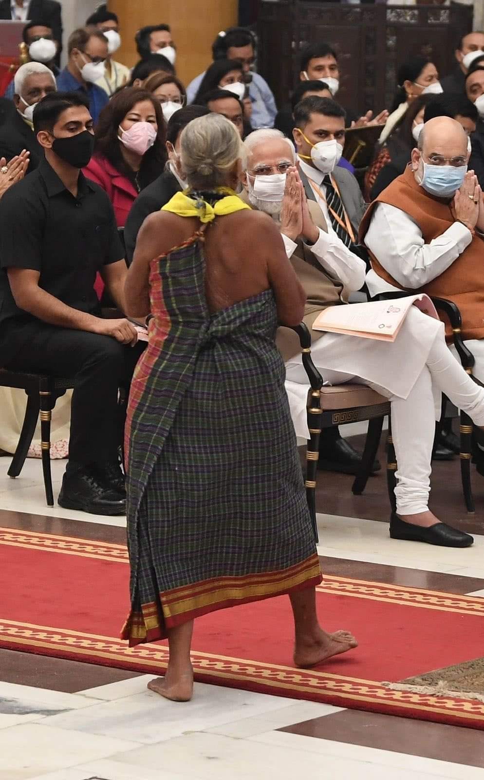 समारोहमा एक महिला आफ्नो आदिवासी भेषमा खाली खुट्टा पुगेकी थिइन् । उनी थिइन वातवरणविद् तुलसी गोवाडा । ७२ वर्षीय तुलसी कर्नाटकको हलाक्की जनजाती समुदायकी महिला हुन् ।