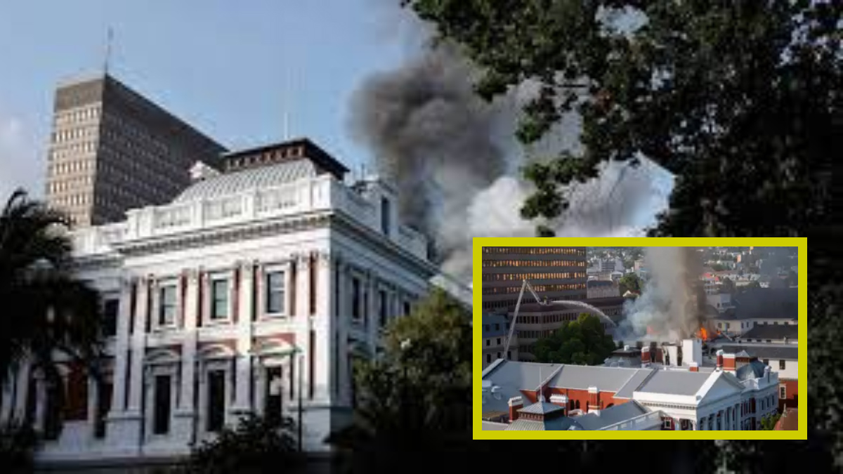 आगोको धुँवा र कालो मुस्लोले वरपरको वातावरण ढाकेको छ । ‘नेसनल एसेम्बलीमा आगो लागिरहेको छ,’ केप टाउन सहरका आपतकालीन सेवाका प्रवक्ताले भने ।