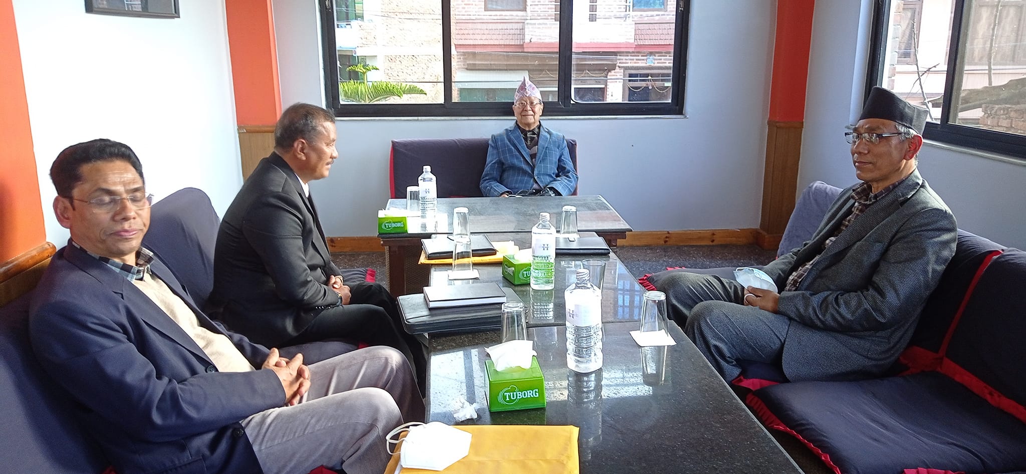 काठमाडौं । नेपाल मजदुर किसान पार्टीका अध्यक्ष नारायणमान बिजुक्छे र नेकपा महासचिव नेत्रविक्रम चन्द विप्लवबीच भेटवार्ता भएको छ । बुधबार दिउँसो बिजुक्छे भेट्न विप्लव पार्टीका प्रवक्ता खड्गबहादुर विश्वकर्मा प्रकाण्डलाई लिएर भक्तपुर पुगेका थिए ।
