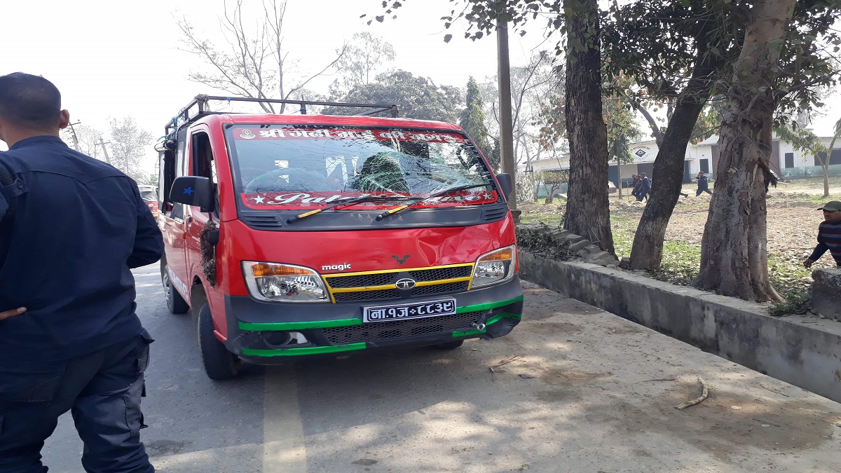 बर्दिया। बर्दियामा भ्यानको ठक्करबाट एक युवतीको मृत्यु भएको छ। बारबर्दिया नगरपालिका–९ बनगाईस्थित सडकमा भ्यानले ठक्कर दिदाँ ती युवतीको मृत्यु भएको हो । प्रहरीका अनुसार भे १ ज १२४१ नम्बरको भ्यानले ठक्कर दिंदा गुलरिया नगरपालिका–४ बालापुरकी २५ वर्षीया मिरा चौधरीको मंगलबार बिहान मृत्यु भएको हो।