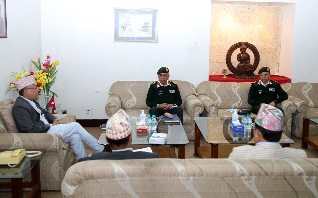 काठमाडाैं । आउँदाे आइतबार ( ४ मंसिर) मा हुने प्रतिनिधिसभा तथा प्रदेशसभा सदस्य निर्वाचनको सुरक्षा व्यवस्थापनका विषयमा निर्वाचन आयोगका प्रमुख आयुक्त र आयुक्तहरूसँग नेपाली सेनाका प्रधानसेनापति प्रभुराम शर्मासहितको टोलीले भेटवार्ता गरेकाे छ ।आयोगको कान्तिपथस्थित कार्यालयमा शुक्रबार भएको भेटका अवसरमा प्रधानसेनापति शर्माले निर्वाचन सुरक्षाका लागि नेपाली सेनाले गर्दै आएको काम कारवाहीबारे अवगत गराउँदै हालसम्मको स्थलगत निरीक्षण र प्राप्त सूचनाका आधारमा निर्वाचनको सुरक्षा चुस्त रहेको र निर्वाचन सुरक्षित वातावरणमा सम्पन्न गराउन सेनाका तर्फबाट खेल्नुपर्ने भूमिका निर्वाह गर्न तयार रहेको जानकारी गराए ।