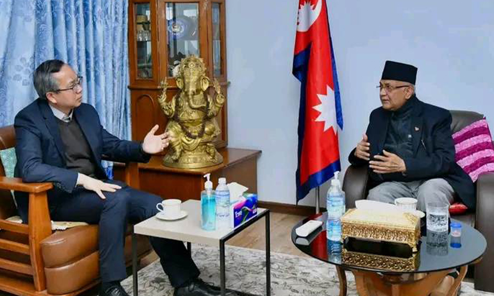 काठमाडौं, ५ माघ । सत्ता गठबन्धन टुट्ने अवस्था विकास भएपछि चिनियाँ राजदूत सक्रिय भएका छन् । शुक्रवार राजदूत चेन सोङले नेकपा एमालेका अध्यक्ष केपी शर्मा ओलीसँग भेटवार्ता गरेका छन् ।
