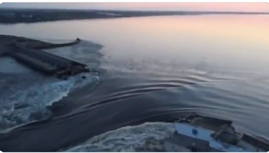 युक्रेनी राष्ट्रपति भ्लादिमिर जेलेन्स्कीले रुसी आतंकवादीले बाँध ध्वस्त पारिदिएको ट्वीट गरेका छन् । ट्वीटमा उल्लेखित भिडियोमा बाँधबाट पानी वेगले बगेको दृश्य देखिन्छ ।