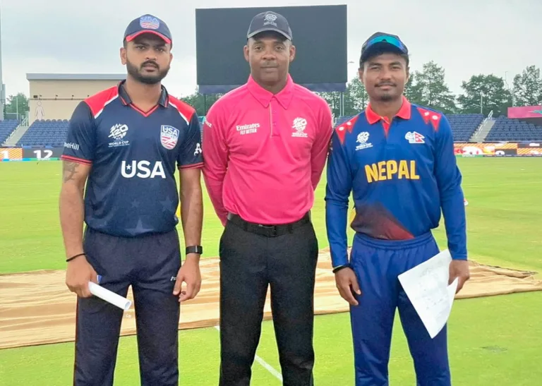 टेक्सस डालासस्थित ग्रान्ड प्रेरी मैदानमा अमेरिकाका कप्तान मोनांक पटेलले टस जित्दा नेपालले पहिलो फिल्ड गर्ने भएको थियो ।