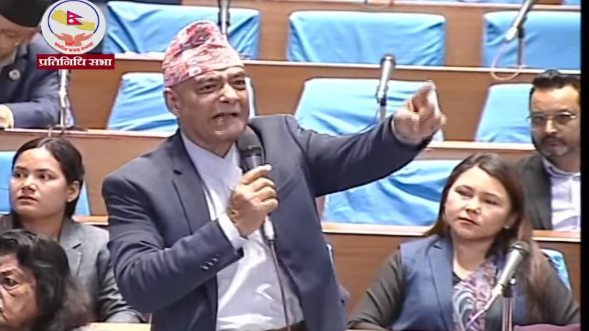 उहाँले उहाँले भन्नुभयो, ‘चैत १५ गतेको तीनकुने घटना हाम्रो कारणले नभई राज्यको कारणले भएको हो । दुर्गा प्रसाईंजी पनि निमुखा जनताको सेवा गर्न लाग्नु भएको छ, उहाँले पनि होइन । राज्यले जनता भड्काएको कारणले त्यो आतंक भएको हो । सभामुख महोदय त्यसको लागि पनि हामीले छानविनको माग गरेका छौँ । सरकार छानविन गर्न किन डराइरहेको छ ?’