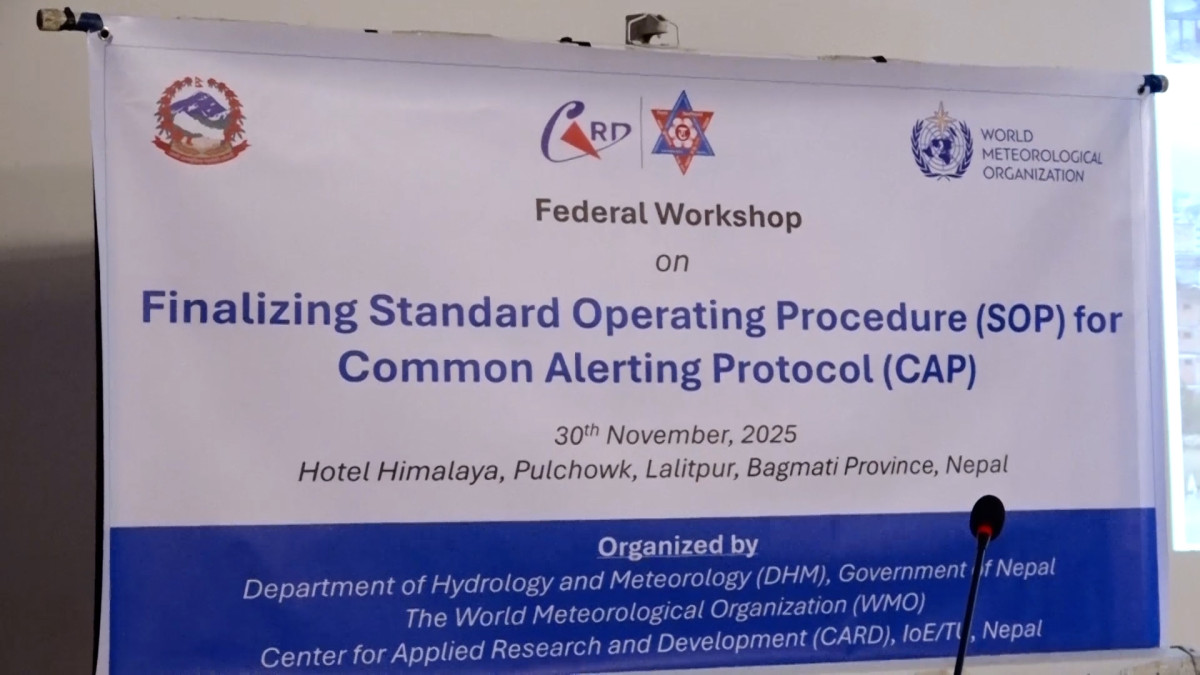 काठमाडाैं । नेपालमा विपद् पूर्वशतर्कता प्रणालीलाई प्रभावकारी बनाउन ‘कमन अलर्टिङ प्रोटोकल’ कार्यान्वयनमा आउने भएको छ । विश्व मौसम संगठनको सहयोगमा मौसम विज्ञान विभागले ‘कमन अलर्टिङ प्रोटोकल’ कार्यान्वयनका लागि तयारी शुरु गरेको हो ।
