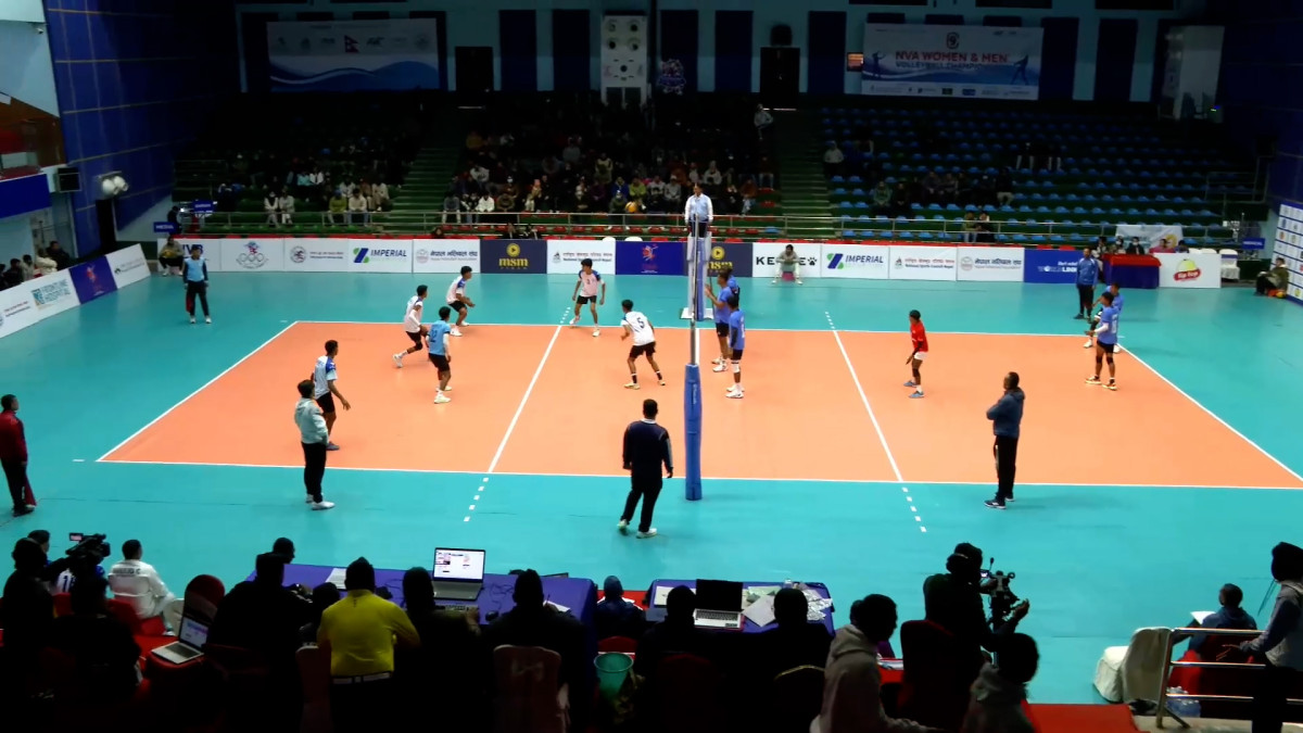 त्रिपुरेश्वरस्थित राष्ट्रिय खेलकुद परिषद्को कभर्डहलमा भएको समूह ‘बी’ को खेलमा मंगलबार पुलिसले विभागीय डर्बीमा एपिएफमाथि ३–२ को जित निकाल्यो । समूहमा बलियो मानिएको एपिएफलाई हराउँदै पुलिसले विजेता बन्ने सम्भावना बलियो बनाएको हो । पुलिसले पहिलो दुई सेट २५–२१ र २५–२५ ले हराउँदै सोझो सेटमा जित निकाल्ने संकेत गरेको थियो । तर, तेस्रो सेट प्रतिस्पर्धात्मक बन्यो । यो सेट एपिएफले २५–२२ ले आफ्नो बनाउँदै खेलमा पुनरागमन गर्ने प्रयास गर्यो । चौथो सेट पनि एपिएफले २५–२१ ले जितेपछि खेल पाँचौं सेटतर्पm धकेलियो । यो सेट जितेपछि एपिएफले कम्तीमा एक अंक पनि सुरक्षित ग¥यो । निर्णायक तथा पाँचौं सेटमा एपिएफले लय जारी राख्न सकेन ।