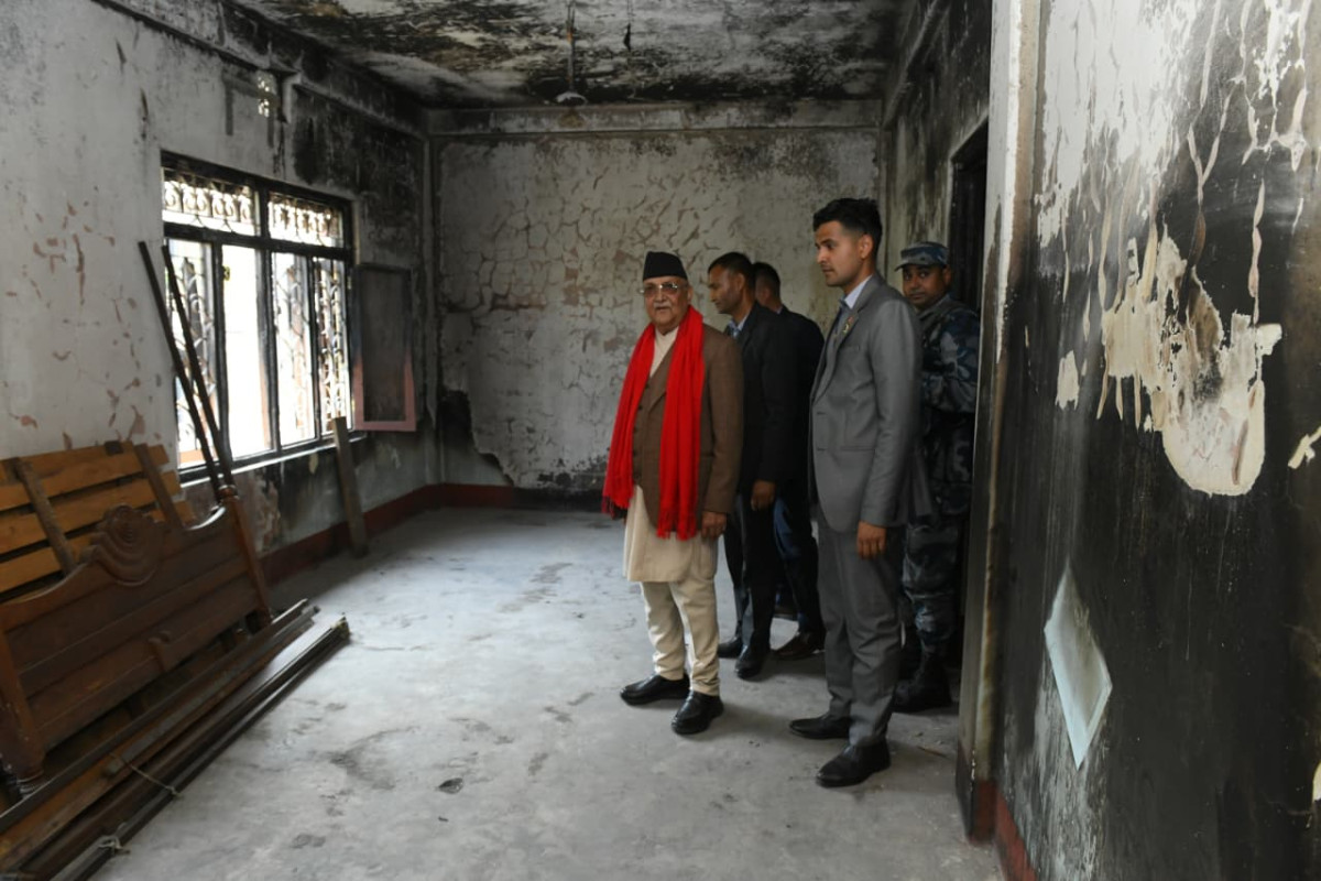 नेकपा (एमाले) का अध्यक्ष तथा पूर्वप्रधानमन्त्री केपी शर्मा ओलीले झापा निर्वाचन क्षेत्र नम्बर ५ मा गत भदौ २३ र २४ गते जेन–जी आन्दोलनका क्रममा आगजनी भएका संरचनाहरूको निरीक्षण गर्नुभएको छ ।जेन–जी आन्दोलनपछि पहिलोपटक गृहजिल्ला झापा पुग्नुभएका अध्यक्ष ओलीले दमक र आसपासका क्षेत्रमा प्रदर्शनकारीहरूले तोडफोड र आगजनी गरेका स्थानीय तहका भवन, सार्वजनिक संरचना तथा निजी सम्पत्तिहरूको अवलोकन गर्नुभएको हो । निरीक्षणका क्रममा उहाँले क्षति भएको सम्पतीको पुनर्निर्माण र प्रभावितहरूलाई राहत उपलब्ध गराउन आवश्यक पहल गर्ने बताउनुभएको छ ।