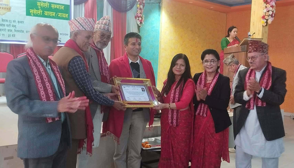 काठमाडौं । राष्ट्रिय सुसेली फाउन्डेशनको आठौं वार्षिकोत्सव विशेष समारोहबीच सम्पन्न भएको छ । यही बैशाख २ गते फाउन्डेशनको वार्षिकोत्सव सञ्चार तथा साहित्य क्षेत्रमा योगदान पुर्याएका विभिन्न व्यक्तित्वहरूलाई सम्मान गर्दै सम्पन्न गरिएको हो ।
