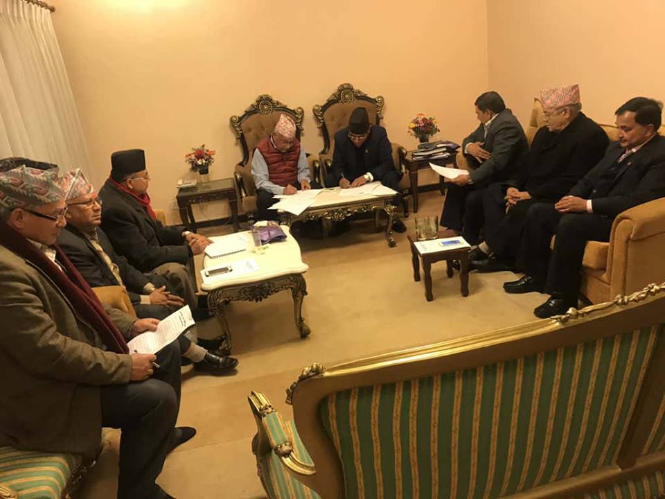 काठमाडौं, ९ फागुन । नेपालको राजनीतिक ईतिहासमा पहिलोपटक कम्युनिष्ट पार्टीको एकमना सरकार गठन हुन लागेको छ । दुई ठुला कम्युनिष्ट पार्टी एमाले र माओवादी केन्द्रबीच एकता आधारपत्रमा हस्ताक्षर भईसकेको छ । प्रधानमन्त्री केपी शर्मा ओलीले नै कम्युनिष्ट एकमना सरकारको नेतृत्व गर्नेछन् ।