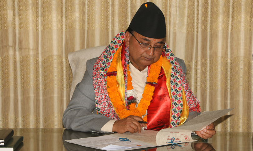 काठमाडौं, १४ फागुन । नवनियुक्त मन्त्रीहरुले राष्ट्रपति विद्यादेवी भण्डारीबाट सपथ लिए लगत्तै सिंहदरबार स्थित मन्त्रालयमा पुगेर पदभार ग्रहण गरेका छन् । नवनियुक्त रक्षा मन्त्री ईश्वर पोख्रेल, गृहमन्त्री रामबहादुर थापा, अर्थमन्त्री डाक्टर युवराज खतिवडा र उद्योग वाणिज्य तथा आपूर्ति मन्त्री मात्रृका यादवले पदभार ग्रहण गरेका हुन् । नेपालको राजनीतिक परिवर्तनमा नवनियुक्त मन्त्रीहरुको महत्वपूर्ण भूमिक छ ।