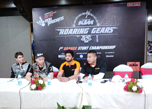 काठमाडौं, २३ फागुन । काठमाडौँमा पहिलो पटक ‘अरेन्ज स्टन्ट’ प्रतिस्पर्धा हुने भएको छ । मोटरसाइकल कम्पनी केटीएमले आज काठमाडौँमा पत्रकार सम्मेलन गरी रोरिङ गेयर्स आयोजना गर्न लागेको जानकारी दिएको हो ।