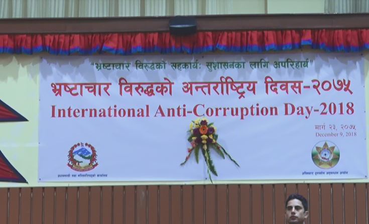 काठमाडौं, २३ मंसिर । भ्रष्टाचार विरुद्धको अन्तराष्ट्रिय दिवस आईतबार नेपालमा पनि विभिन्न कार्यक्रम गरी मनाईएको छ । दिवसको अवसरमा अख्तियार दुरुपयोग अनुसन्धान आयोगले कार्यालय परिसरमा विशेष कार्यक्रम आयोजना गरियो । भ्रष्टाचारविरुद्ध आवाज बुलन्द पार्ने उद्देश्यले हरेक वर्ष दिवस मनाइए पनि भ्रष्टाचार भने रोकिएको छैन ।