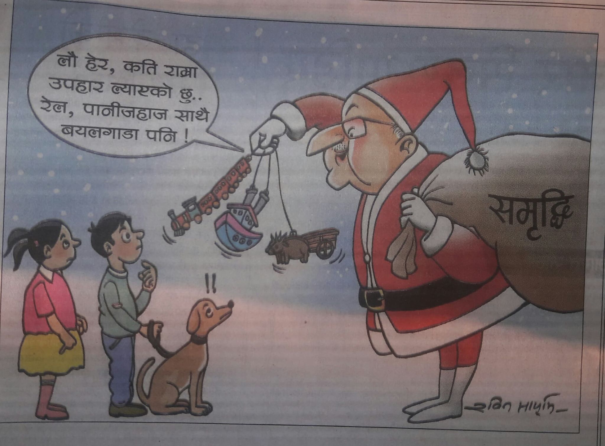 काठमाडौं, १० पुस । आज प्रकाशित पत्रपत्रिका कान्तिपुर, नागरिक र नयाँ पत्रिकामा छापिएका कार्टुन्ः Share this:FacebookX अघिल्लो समाचार मन्त्रीहरू मुख्यमन्त्री कार्यालयबाट इन्धनको नगद बुझ्छन्, मन्त्रालयको कुपनबाट तेल हाल्छन् पछिल्लो समाचार देशको ढुकुटीमा २ खर्ब ६ अर्व नगद मौज्दात, निर्यात भन्दा आयात बढि ताजा समाचार अब १५ दिनमै तलब भुक्तानी, बजारमा तरलता बढ्ने विश्वास ! १ मिनेट अघि पेट्रोलियम मूल्यवृद्धि फिर्ता लिन माग गर्दै जेन–जी अभियानले नेपाल आयल निगमलाई बुझायो ज्ञापनपत्र २८ मिनेट अघि गैरकानूनी नीति खारेज र छानबिन माग गर्दै लेखा समितिमा लगानीकर्ता संघको निवेदन ५६ मिनेट अघि सरकारले प्रदेश संरचना खारेज गर्न चाहे राप्रपाको साथ रहन्छ : नेता शाही १ घन्टा अघि तीनवटा संसदीय उपसमितिहरू पुनर्गठन २ घन्टा अघि एमआरपी कार्यान्वयन तिब्र, व्यवसायीद्वारा विरोध २ घन्टा अघि सम्बन्धित खबर बाजुराका नौ स्थानीय तह उपप्रमुखलाई ‘नौथरी’ सेवासुविधा आइतबारदेखि काठमाडौं प्रशासनको सेवा सुरु हुने निर्वाचन आचारसंहिता उल्लंघन गर्ने २१२ मिडियामाथि कारवाही नेता वामदेव गौतम एमालेमै पर्यटनमन्त्री प्रेम आलेविरुद्ध संसदीय समितिमा उजुरी विज्ञापन बोर्डको गठनमा भएको ढिलाईप्रति मिडिया एलाईन्सद्वारा सरकारको गम्भीर ध्यानाकर्षण