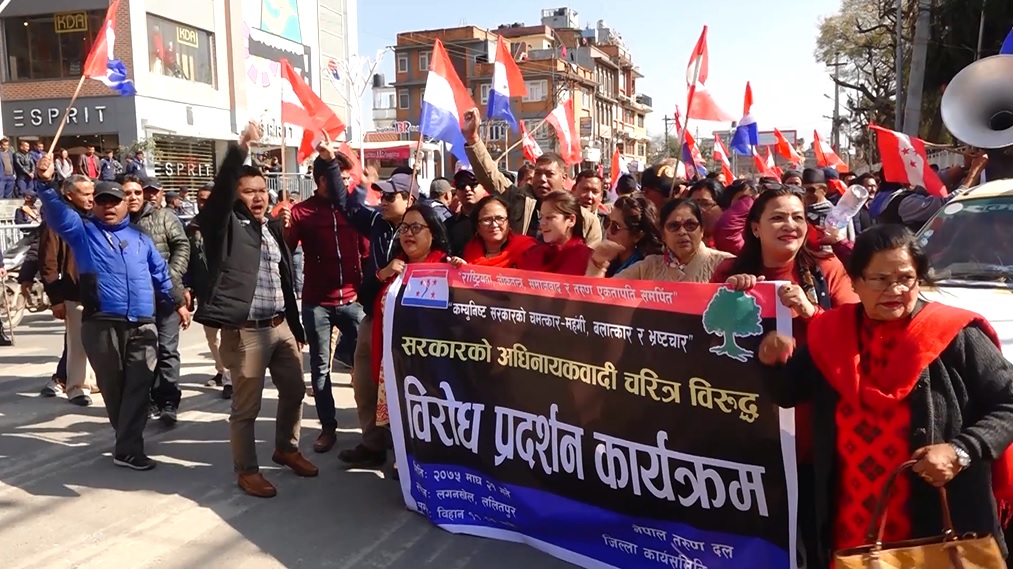 काठमाडौं, २१ माघ । प्रमुख प्रतिपक्षी दल नेपाली कांग्रेसले आज देशभर सरकारविरुद्ध प्रदर्शन गरेको छ । महँगी, भ्रष्टाचार र सरकारका कतिपय निर्णयको विरोधमा कांग्रेसले देशव्यापी प्रदर्शन गरेको हो ।