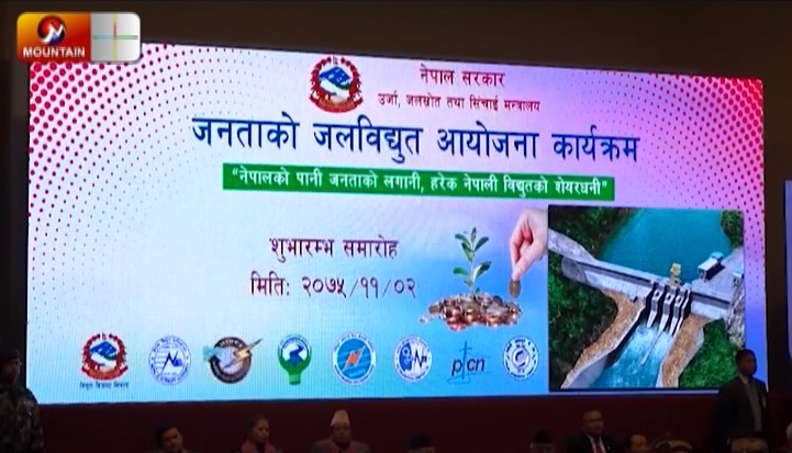 काठमाडौं, ६ फागुन । जलविद्युत विकासको लागि आम नागरिकलाई सेयरमा प्रत्यक्ष सहभागी गराउने लक्ष्यसहित सरकारले नेपालको पानी जनताको लगानी, हरेक नेपाली विद्युत्को शेयरधनी भन्ने नाराका साथ जनताको जलविद्युत् आयोजना कार्यक्रम लागू गरेको छ ।