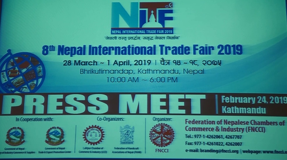काठमाडौं, १२ फागुन । आगामी चैत दोश्रो हप्ताबाट काठमाडौंको भृकुटीमण्डमा नेपाल अन्तर्राष्ट्रिय व्यापार मेला हुने भएको छ । नेपाल उद्योग वाणिज्य महासंघले आईतबार राजधानीमा पत्रकार सम्मेलन गरि मेलाबारे जानकारी गराएको हो ।