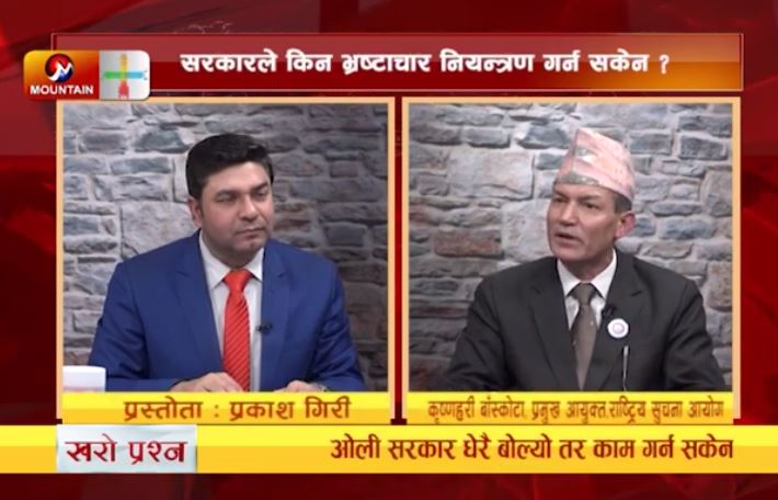 काठमाडौं, १३ फागुन । नेपालमा अहिले फरक विषयले चर्चा पाईरहेको छ । सरकारले जब सूचना प्रविधि विधेयक संसदमा प्रस्तुत गर्यो, त्यसपछि त्यसको पक्ष र विपक्षमा मतहरु जायर भईरहेको छ । विधेयकहरु प्रस्तुत हुँदा सांसदहरुले मत राख्ने, छलफल गर्ने त छदै छ संगसंगै संसदमा भएको बहस र त्यसको सेरोफेरोमा रहेर आम जनताको बीचमा पनि बहस हुने गर्दछन् । त्यस्ता बहसले विधेयकहरुलाई अझ परिपक्क बनाउँन मद्धत गर्दछ । यो एउटा विधेयक एकछिन् छाड्ने हो भने समग्र मुलुकले बनाएको संविधानको बारेमा उतिकै धेरै बहस भईरहेको छ । सरकारको बारेमा पनि बहस भईरहेको छ । सरकारले एक वर्षमा के गर्यो, अर्थतन्त्रमा के सुधार भयो ? सरकारले कहाँ ध्यान दिनु पर्थ्यो र कहाँ ध्यान दिईरहेको छ ? यी र यस्तै विषयमा केन्द्रित कार्यक्रम ‘खरो प्रश्न’ मा प्रस्तोता प्रकाश गिरीले राष्ट्रिय सूचना आयोगका प्रमुख आयुक्त कृष्णहरी बाँस्कोटासंग गरेको कुराकानी हेर्नुहोस् :