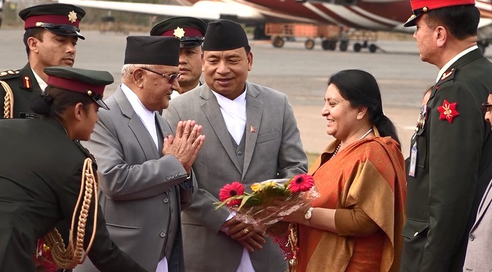 उनलाई त्रिभुवन अन्तर्राष्ट्रिय विमानस्थलमा उपराष्ट्रपति नन्दबहादुर पुन, प्रधानमन्त्री केपी शर्मा ओली, उपप्रधानमन्त्री, मन्त्रीगणलगायतले स्वागत गरेका थिए । त्यसै अवसरमा नेपाली सेनाले राष्ट्रपति भण्डारीको सम्मानमा सलामी समेत अर्पण गरेको थियो ।