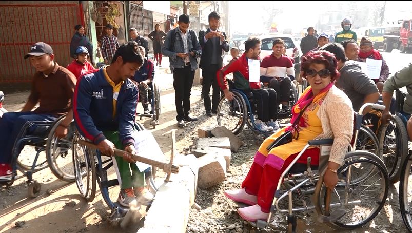 शारिरीक अशक्तले गरे प्रर्दशन, ह्वील चियर मैत्री सडक तथा फुटपाथ निर्माण गर्न सरकारसँग माग | ईमाउण्टेन समाचार