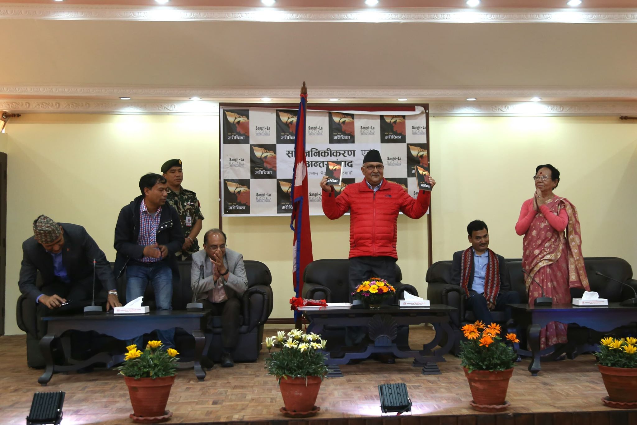 काठमाडौं, २२ चैत । प्रधानमन्त्री केपी शर्मा ओलीले साहित्यकार महेश थापाद्वारा लिखित पुस्तक मरिचिकाको आज विमोचन गरेका छन् । प्रधानमन्त्री ओलीले प्रधानमन्त्री निवास बालुवाटारमा आज सो पुस्तकको विमोचन गरेका हुन् ।