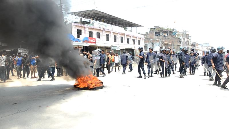 विराटनगरका विभिन्न स्थानमा टायर बालेर बिरोध गरिएको छ भने केही स्थानमा प्रहरी र बन्दकर्ता बिच सामान्य घम्साघम्सी समेत भएको छ । विराटनगरको महाबिर चोक, गुन्द्री चोक, पुष्पलाल चोक, कन्चनबारी चोक लगायतका विभिन्न स्थानमा बन्दकर्ताहरुले मोटरसाईकल समेत चलाउन दिएका छैनन् भने विराटनगर प्रवेश गर्ने विभिन्न नाकाहरुमा अवरोध गरिएको छ ।