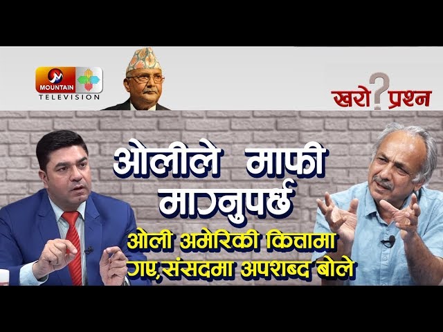 काठमाडौं, ३० बैशाख । वरिष्ठ पत्रकार युवराज घिमिरेले प्रधानमन्त्री केपी शर्मा ओली अमेरिकी कित्तामा गएको आरोप लगाएका छन् । माउन्टेन टेलिभिजनबाट प्रसारण हुने कार्यक्रम ‘खरो प्रश्न’मा बोल्दै उनले यस्तो बताएका हुन् । उनले प्रधानमन्त्रीले संसदमा बोलेका शब्दलाई अपशब्द भनेका छन् । संसदमा प्रतिपक्षीले सोधेका प्रश्नलाई प्रधानमन्त्री ओलीले ‘निम्छरो’ भनेका थिए । संसदमा प्रधानमन्त्रीले यस्ता शब्द बोल्नु अशोभनिय भएकाले माफी माग्नुपर्ने घिमिरेको तर्क छ । थप जानकारीका लागि भिडियो हेर्नुहोस्: