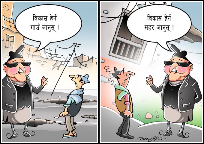 काठमाडौं, ३ कात्तिक । आज प्रकाशित पत्रपत्रिकाका कार्टुन : Share this:FacebookX अघिल्लो समाचार न्याय खोज्दाखोज्दै मारिइन् आमा पछिल्लो समाचार ओलीको अभिव्यक्तिपछि दाहालसँग दूरी, पुराना सहमति कार्यान्वयनमा ओलीको वेवास्ता ताजा समाचार वायु प्रदुषण बढ्योः अत्यावश्यक कामबाहेक घरबाहिर ननिस्कन स्वास्थ्य मन्त्रालयको आग्रह ५३ मिनेट अघि संसद भवन नबनेपछि प्रतिनिधि सभा संसद परिसरकै बहुउद्देश्यीय हलमा सञ्चालन गर्ने तयारी ५९ मिनेट अघि झन्डै दुई तिहाई बहुमत नजिकको सरकारको आर्थिक नीति कस्तो होला ? १ घन्टा अघि खर्बपति उद्योगीदेखि मुलुकको ढुकुटी चलाएका पूर्वअर्थमन्त्रीसमेत पराजित २१ घन्टा अघि नवनिर्वाचित राष्ट्रिय सभा सदस्यहरुद्वारा पद तथा गोपनीयताको शपथ ग्रहण २१ घन्टा अघि समानुपातिक मतमा पनि रास्वपा अगाडि, कांग्रेस र एमाले पछ्याउँदै २४ घन्टा अघि सम्बन्धित खबर भ्रष्टाचारविरुद्ध कार्टुन प्रदर्शनी मापदण्ड विपरीतका स्यानिटाइजर सहित ३ जनालाई पक्राउ प्रतिबन्धित रेड बुल बिक्री बितरण गर्ने ४ जना पक्राउ कर्णाली राजमार्ग अवरुद्ध भएपछि जुम्लामा हेलिकोप्टरबाट राहत सामग्री वितरण आजका कार्टुन आजका कार्टुन