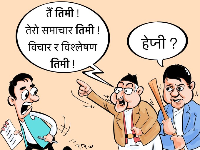 काठमाडौं, ३ फागुन । आज प्रकाशित पत्रपत्रिकाका कार्टुन : Share this:FacebookX अघिल्लो समाचार एचआइभीविरुद्धको खोप बन्दै पछिल्लो समाचार कोरोना भाइरसविरुद्ध उच्च सतर्कता अपनाउने सरकारको निर्णय ताजा समाचार देशभर पछिल्लो २४ घण्टामा ७३ विपद्का घटनाः ४ जनाको मृत्यु, साढे २ करोडभन्दा बढीको क्षति ९ घन्टा अघि राष्ट्रपति पौडेलद्वारा पूर्वप्रधानमन्त्री ओलीलाई समवेदना प्रकट १० घन्टा अघि अर्को निर्वाचनमा प्रतिपक्षीविहिन हुनेगरि काम गर्नुपर्नेछः उपसभापति अर्याल १० घन्टा अघि सीमा द्वन्द्वले पुनर्वासमा बाधा पुर्याएपछि अफगानिस्तान फर्किएकाहरू शान्तिको पर्खाइमा १३ घन्टा अघि अमेरिका–इजरायल–इरान द्वन्द्व १८ औं दिनमा पनि जारी १३ घन्टा अघि राष्ट्रिय स्वतन्त्र पार्टीको अभिमुखीकरण तथा परिचयात्मक कार्यक्रम शुरु १४ घन्टा अघि सम्बन्धित खबर भ्रष्टाचारविरुद्ध कार्टुन प्रदर्शनी मापदण्ड विपरीतका स्यानिटाइजर सहित ३ जनालाई पक्राउ प्रतिबन्धित रेड बुल बिक्री बितरण गर्ने ४ जना पक्राउ कर्णाली राजमार्ग अवरुद्ध भएपछि जुम्लामा हेलिकोप्टरबाट राहत सामग्री वितरण आजका कार्टुन आजका कार्टुन